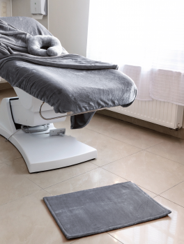 Килимок для ніг у салоні краси це комфорт та турбота про клієнта. Його розташовують біля косметологічної кушетки, масажного столу чи крісла для педикюру або у роздягальнях, де відвідувачі знімають одяг та взуття. Додатково, з метою дотримання гігієнічної безпеки, килимок застеляють серветкою зі спанбонду, змінюючи її перед кожним відвідувачем.
