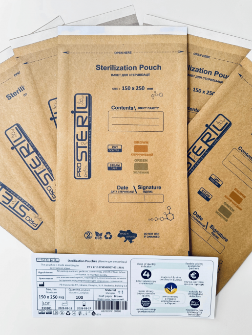 Паперові пакети для повітряної стерилізації самоклеючі (крафт пакети для стерилізації), застосовуються для підтримання стерильності інструментів при зберіганні.