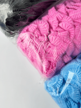 Одноразові шапочки для волосся продаються упаковками по 100 штук. Придбати шапочки зі спанбонду за оптовою ціною можна на нашому сайті та в магазині.