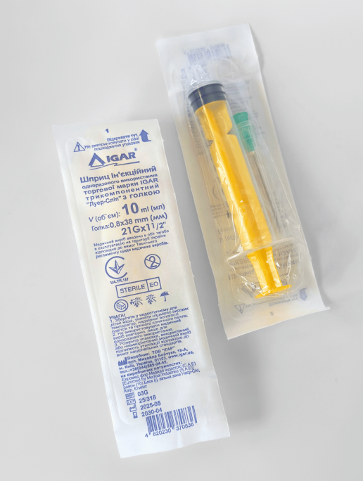 Шприц 10мл Luer з голкою 21G, IGAR (100 шт/уп) купити, ціна в chila.ua