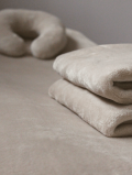 Чехлы на кушетку многоразового использования изготовлены из синтетического материала велсофт (Wellsoft), который часто называют плюшем или искусственной махрой. Эта высококачественная синтетическая ткань (100% полиэстер) состоит из тончайших волокон с минимальным диаметром 0,06 мм. Тонкие нити сплетены в материал, имеющий множество воздушных полостей, благодаря чему велсофт получается таким воздушным и мягким.