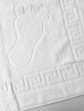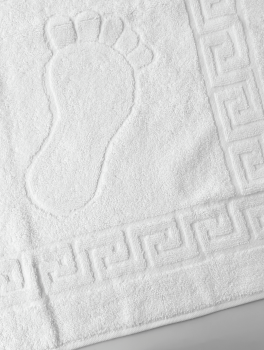 Коврик для ног белого цвета изготовлен из высококачественной 100% хлопковой махры. Полотенце отлично впишется в любой интерьер, будь то дом, гостиница, отель или хостел. Такие полотенца можно использовать даже в помещениях с высокой температурой: баня, сауна, СПА-центры.