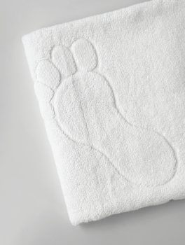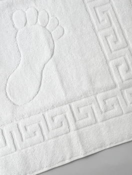 Коврик для ног белого цвета изготовлен из высококачественной 100% хлопковой махры. Полотенце отлично впишется в любой интерьер, будь то дом, гостиница, отель или хостел. Такие полотенца можно использовать даже в помещениях с высокой температурой: баня, сауна, СПА-центры.