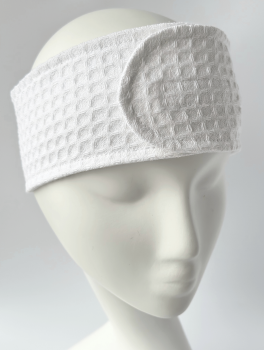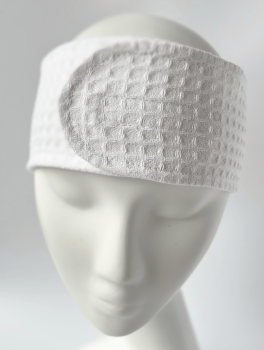 Косметическая повязка на голову с липучкой вафельная, белая
