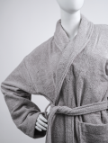 Однотонный махровый халат серого цвета из качественного хлопка, мягкий и приятный на ощупь. Такой халат – идеальное решение для гостиниц и SPA центров. Модель халата универсальна, подходит как для женщин, так и для мужчин (унисекс). Имеет удобные карманы с обеих сторон.