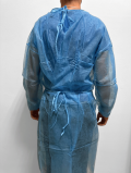 Резинки на рукавах изделий обеспечивают надежную фиксацию вне зависимости от плотности одежды и уберегают ее от загрязнений даже при длительном использовании. Одноразовые медицинские халаты одеваются поверх основной одежды и фиксируются сзади на спине с помощью завязок. Данный халат не сковывает движений, очень удобен и практичен при ношении.